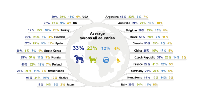 Dogs and cats are the most commonly owned pets with a global average rate of 33% and 23% respectively as shown in below figure. In the GCC, cultural considerations mean that cats are the primary mammalian pets, although dogs are sometimes kept; especially as working dogs such as guard dogs. For the purposes of this research only cats are considered.