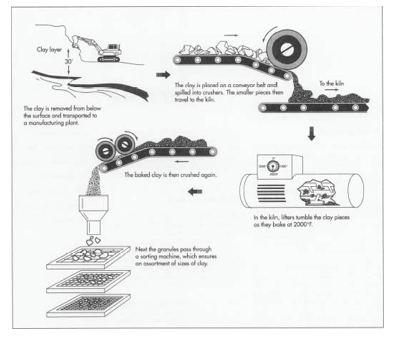 - The clay is loaded onto conveyor belts and spilled into giant crushers. The crushers break the clay into smaller pieces, then deposit them onto another conveyor belt, which feeds the clay into a kiln.