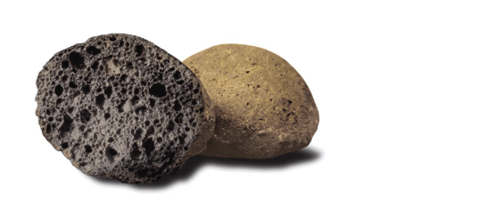 As the material is heated to around 1100 °C, chemical reactions inside the spheres generate gas. As the surface of the spheres remains closed, the gas formed inside the pellet cause the formation of large pores and an expansion of the pellet – as shown in below figure.
