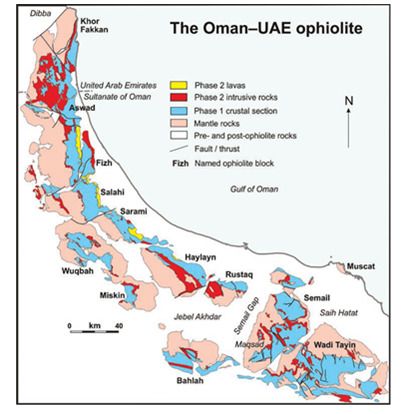 The Oman Mountains form an arc extending for 700 km along the northeast edge of the Arabian Peninsula. Important volcanic activities occurred in Oman during several phases. These activities formed the volcanism areas which characterize most of the Oman Mountains (Figure 53). These areas include: