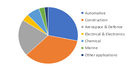 The global basalt fiber market is expected to witness a significant growth due to high demand from various industries. Figure 3 shows that the main bulk applications are in automotive, construction and electrical and electronics industries. Basalt fiber market is anticipated to grow during the forecast period owing to tremendous growth in the automotive industry especially in the emerging economies such as India, China, and Brazil. Moreover, the basalt industry is expected to witness high demand from automobile and construction sector owing to their resistance power to varying temperature and chemicals, high mechanical strength, low water absorption and durability. These fibers are expected to replace the expensive glass and carbon fibers in various industries. Increased government spending in various countries including Saudi Arabia, Mexico and BRICS is expected to push demand for this industry[4]. The basalt fiber market is projected to grow at a CAGR of 11.8 % from 2019 to 2024 to reach a value of around USD 400 million by the end of this period[5].