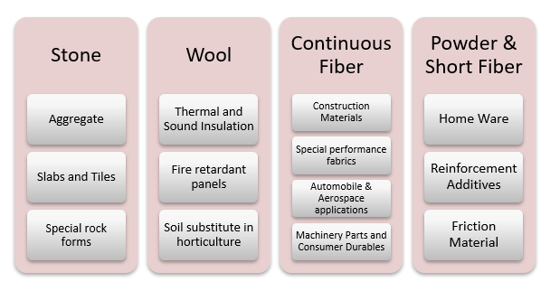 Figure 12: Basalt Wool Products from Basalt Rocks