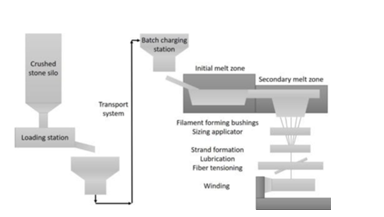 Figure 19: Process steps in conversion of Basalt rock to Continuous Basalt Fiber