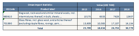 Table 1: Import statistics for non-woven glass wool, rock wool and other insulation materials