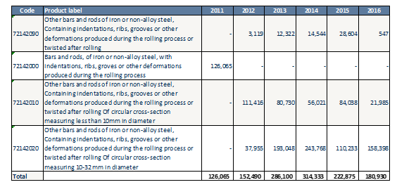 From the statistics, it can be seen below that although the import of smaller diameter bars and rods (HS code 72142010) has drastically decreased, it has been accompanied by increase in import of higher diameter products in the same category. Basalt rebar has excellent advantages in the higher diameter segment due to its light weight and ability to compete at cost due to much lower transport and handling costs.