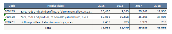 Table 3: Aluminium profiles Oman import statistics (value in US$ ‘000) 2015-1814