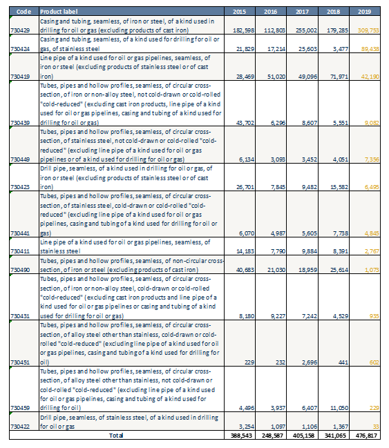 Table 4: Import statistics for seamless tubes, pipes and hollow profiles of iron and steel14