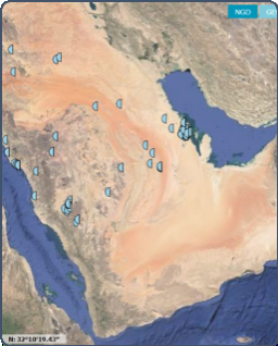 الشكل. 20: تظهر الخريطة التوزع الجعرافي لمواقع محاجر الدولوميت بالمملكة العربية السعودية.