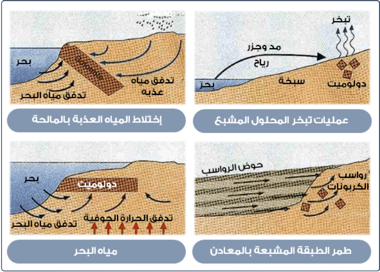 عمليات تبخر المحلول المشبع بالمعادن (Evaporative Dolomitization).