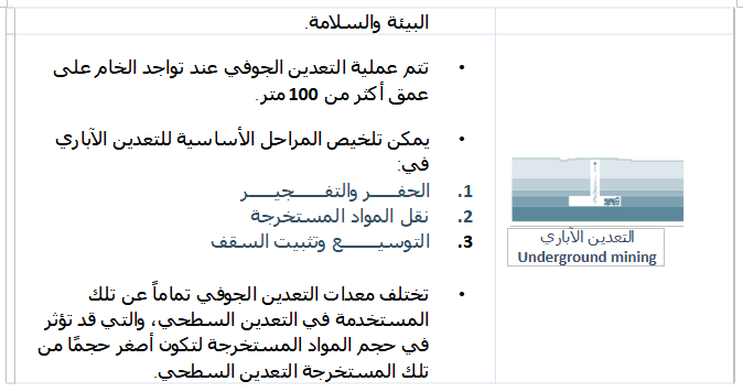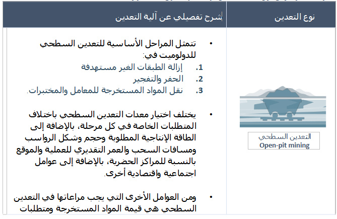 الجدول. 1: جدول يوضح أنواع عمليات التعدين الرئيسية لإستخراج معدن الدولوميت: