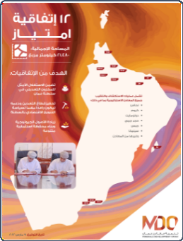 حيث قامت شركة تنمية معادن عمان (MDO) في شهر مارس من هذا العام (2022) بتوقيع 12 اتفاقية امتياز من التنقيب إلى التعدين، وتشتمل بذلك جميع المعادن الاستراتيجية بسلطنة عمان بما فيها الدولوميت كمادة خام والمغنيسيوم كمنتج نهائي (الشكل. 12). فقد عملت الشركة على اسناد عدد من المشاريع للمؤسسات الصغيرة والمتوسطة بقيمة 6.8 مليون ريال عماني، خصص 527 ألف ريال عماني لأعمال الحفر الاستكشافي لخام الدولوميت والنحاس.