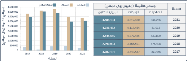 الجدول. 3: أبرز المنتجات تم استيرادها لسلطنة عمان من الخارج خلال الخمس سنوات الماضية بالإضافة الى إجمالي الواردات من هذه المنتجات: