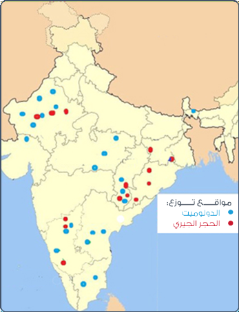 ويصل معدل إنتاج الدولوميت في الهند إلى 6.3 مليون طن، والذي يشكل 4.6% من إجمالي إنتاج العالم. ويوجد ما لا يقل عن 170 محجر للدولوميت، حيث تتوزع أكبر الإحتاطيات في 6 مناطق. وتعتمد على تقنيات التعدين التقليدية في إستخراج الدولوميت منها Open pit / Opencast. وعلى الرغم من وجود محاجر الدولوميت في الهند والمصانع العاملة في إنتاجه، إلا أنه لا يغطي إحتياجات السوق لذا يتم إستيراد الدولوميت من دول مختلفة حول العالم أبرزها سلطنة عمان والإمارات وبوتان وتايلاند.