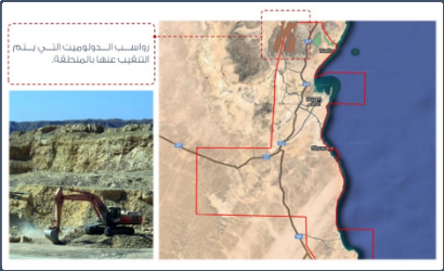 الشكل. 13: التوزع الجغرافي لمواقع تواجد الدولوميت محليًا بمناطق الإمتياز التعدينية.